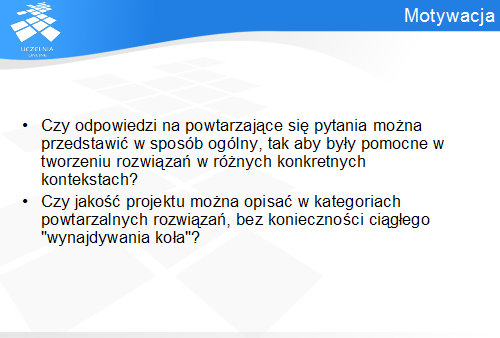 Taki wzorzec jest gotowym schematem postępowania, który można zastosować w wielu sytuacjach, łącząc go także z innymi wzorcami.