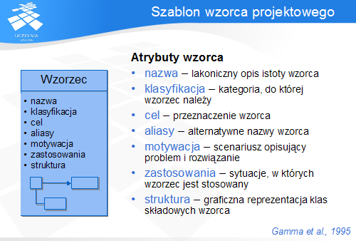 Zdaniem Aleksandra, każdy wzorzec powinien być opisany przez następujące atrybuty: