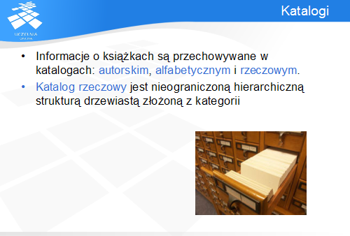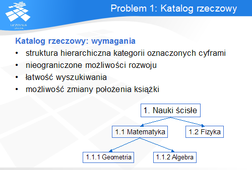 Przykład dotyczy właśnie katalogu rzeczowego. Wobec niego postawione są następujące wymagania: