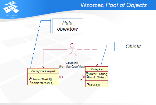 Klient może otrzymać instancję klasy Obiekt wyłącznie za pomocą Puli obiektów i w ten sam sposób zwalnia przydzielony obiekt.