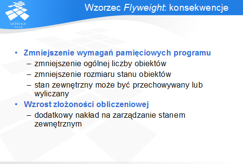 Zalety tego rozwiązania są więc identyczne jak w przypadku puli obiektów, a jednocześnie możliwe jest także konfigurowanie obiektów danymi specyficznymi.